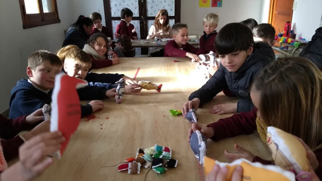 espacio para que los chicos compartan una experiencia y creen un juguete de tela, que luego se llevarán. El proceso de fabricar con sus propias manos promueve la creatividad y la motricidad fina, favorece la atención plena y la consciencia del aquí y el ahora. “Primero trabajamos con la investigación de los animales autóctonos y luego como momento culmine del proyecto se trajo a las chicas para que ellos pudieran conocerlas y que pudieran hacer sus creaciones” Explicó.