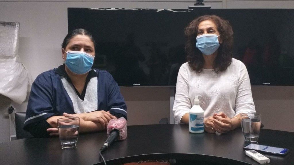 Esta mañana, en el Hospital Miguel Capredoni, la secretaria de Salud, María Estela Jofré, junto a la co- directora del Hospital, Dra. Marcela Laborde, brindaron detalles sobre el paciente que volvió a dar positivo para Covid-19.