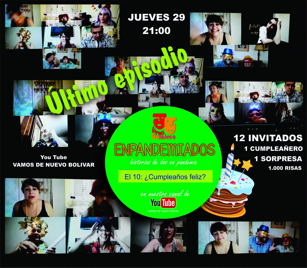 Este jueves a las 21 horas, el Grupo de Teatro "Vamos de Nuevo " estrena el último episodio de ENPANDEMIADOS. En este caso es el número 10, llamado ¿Cumpleaños feliz?. Este será un episodio especial de 20 minutos de duración, en el que participan 13 actores del grupo, la mayoría participantes de los episodios anteriores.-