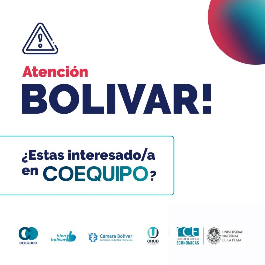 La Cámara Bolívar y el Centro Regional Universitario de Bolívar (CRUB) junto Coequipo, un Proyecto de Extensión de la Facultad de Ciencias Económicas (FCE) de la UNLP, lanzan una encuesta destinada a estudiantes y graduados universitarios, residentes en el partido de Bolívar, que deseen formar parte de un equipo de asesoramiento técnico no arancelado a distintos tipos de organizaciones de la ciudad y alrededores.