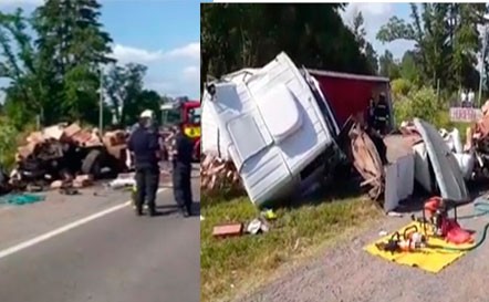 Trabajaron en el lugar Bomberos Voluntarios de Roque Pérez, más policía de la ciudad. Los camiones impactaron en la ruta 205 y la consecuencia del grave accidente son los tres fallecidos.