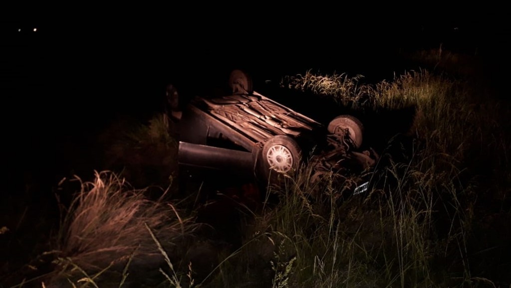 Si bien la imagen muestra al vehículo con las ruedas hacia arriba, podemos adelantar que ambos ocupantes se encuentran fuera de peligro, más allá de las excoriaciones y golpes lógicos del accidente.