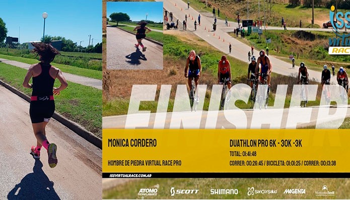 La joven relató que desde que empezó el aislamiento, nunca tuvo que dejar de entrenar, y por eso se encontraba en buena forma para enfrentar la maratón. “Inicié la carrera recorriendo una distancia de 6km a 4.28’/km en trote, 30 km de bicicleta (que se realizaba sobre un rodillo que simulaba las sierras de Tandil) y terminé con 3 km de trote a una velocidad lograda de 4.33’/km”.