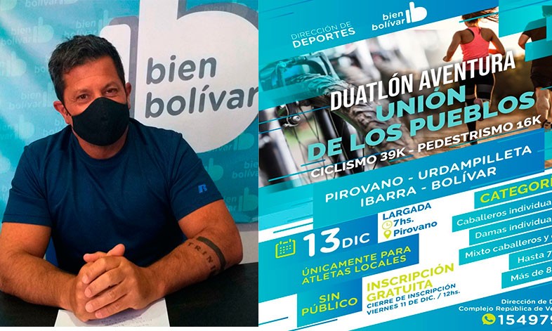El Duatlón es gratuito, y se corre desde Pirovano a Bolívar, 60 km aproximadamente. Puntualmente se recorrerá Pirovano- Urdampilleta- Ibarra por el circuito de la repetidora, en bicicleta (39 km) y ahí los corredores trotarán hasta el Club Empleados (16 km).