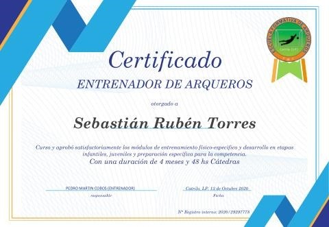 Sebastián contó que realizó el curso de Entrenador de Arqueros de manera virtual con el profesor Pedro Martin Cobos, a través de la Escuela de Catrilo, La Pampa.