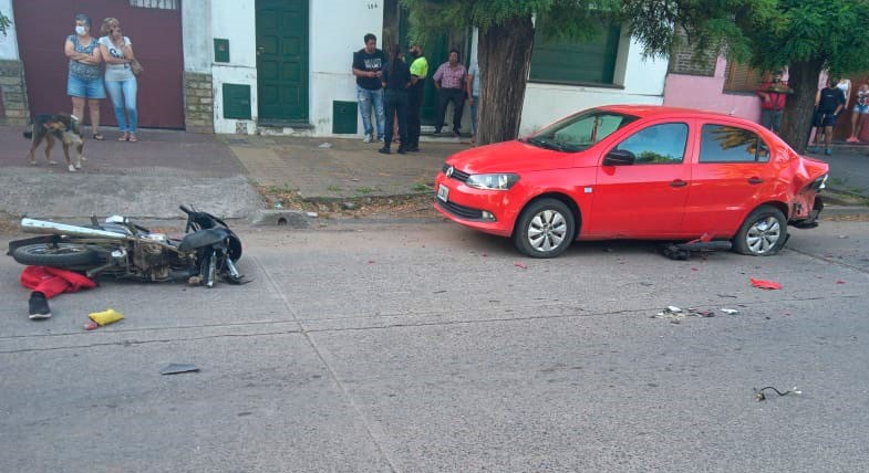Por causas a establecer, ambos motociclistas impactaron contra la parte trasera izquierda de un Volkswagen Voyage que se encontraba estacionado en la calle.