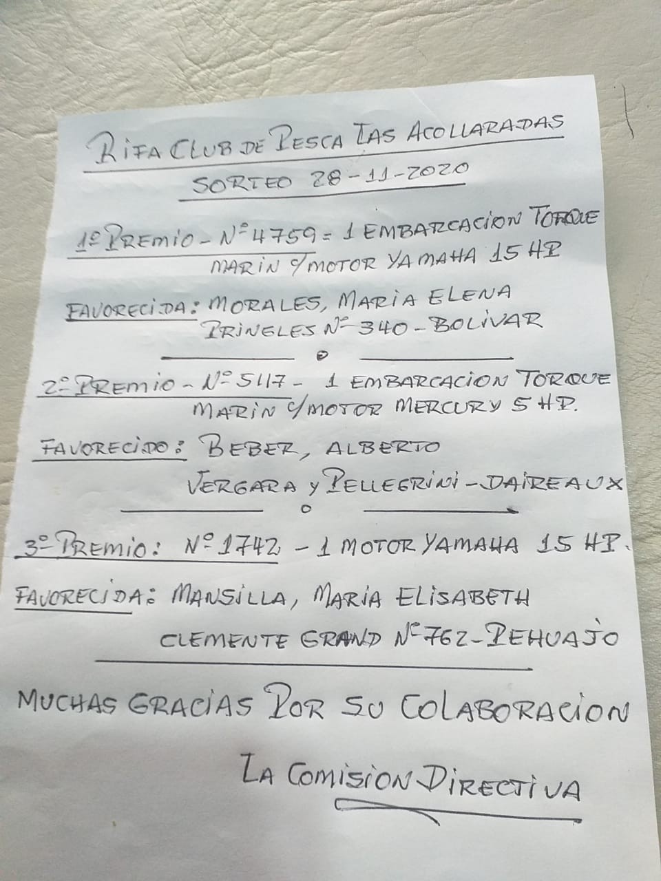 🎉Felicitamos a los ganadores y agradecemos su colaboración con la Comisión Directiva 🎊