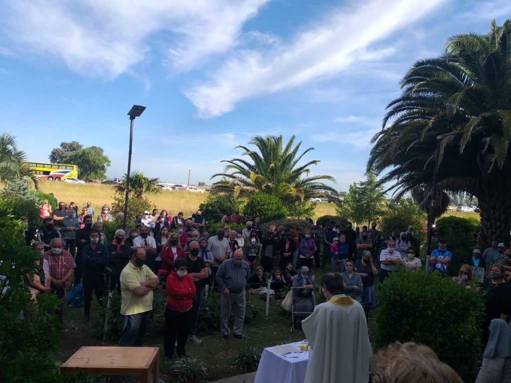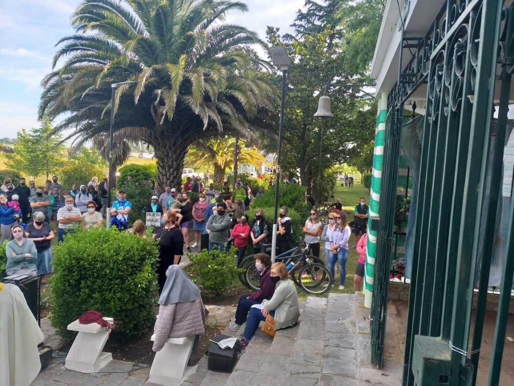 Alrededor de las 8 horas se realizó la misa prevista por el padre Mauricio Scoltore, con el público que decidió quedarse a presenciarla.