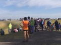 Al llegar el grupo al cruce de las vías en ruta nacional 205, el Director de Seguridad Vial Luis Gauna y su equipo, organizaron el tránsito para evitar cualquier accidente, al igual que la compañía de dos agentes a bordo de sendas motos y el apoyo irrestricto del hospital Capredoni con una ambulancia, personal médico y paramédico para asistir a cualquiera de los peregrinos ante una descompensación. Cabe subrayar que Arturo Martín del área Municipal de Parques y Jardines organizó el corte de pasto en las banquinas, para que los caminantes puedieran avanzar sin problemas.