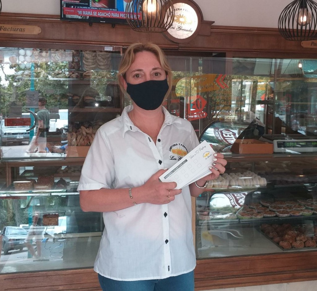 "Estamos muy conformes con la excelente participación de la gente, por momentos nos quedábamos sin cupones y Romina (Librería ABC) nos imprimía más para no poder fallarle a nadie. Los premios pueden ser retirados parcialmente, por ejemplo quien gana 50 kilos de pan o varias docenas de facturas, lo va llevando como lo porponga", destacó Vanesa C+anepa en la entrevista con Sandra Renna desde el móvil de FM 10