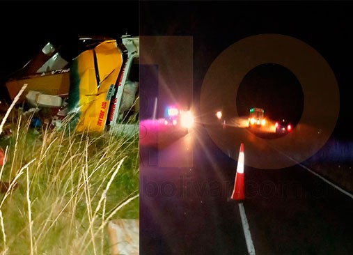 En forma simultánea, en este caso salió el móvil 7 a cargo de Francos Pasos para asistir a los ocupantes de un vehículo que remolcaba una casilla rodante, la cual terminó volcada en ruta 65, más precisamente a la altura de "Los 4 Vientos".