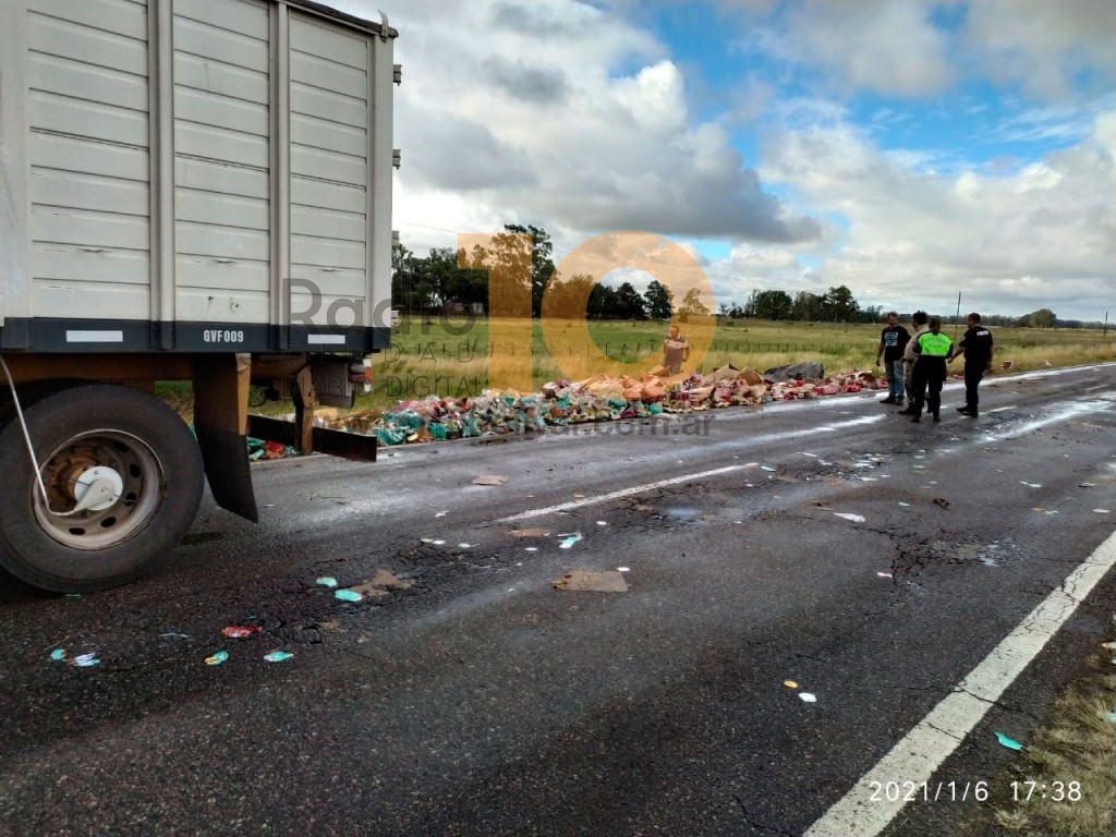 Se trata de un camión un camión marca Renault 440 con dominio colocado MRG-284 que conducido por el señor Ricardo Satarain. Como referencia, la carga quedó dispersada en la bajada al establecimiento El Inicio.