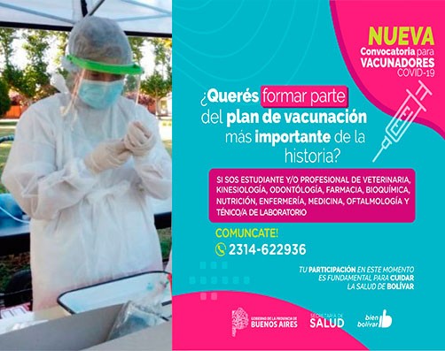 En el marco del Plan Provincial de Vacunación Covid-19, y frente a una inminente campaña masiva para vacunar a gran parte de la comunidad, la gestión municipal convoca a estudiantes y profesionales afines a la salud a realizar la capacitación de vacunadores eventuales.