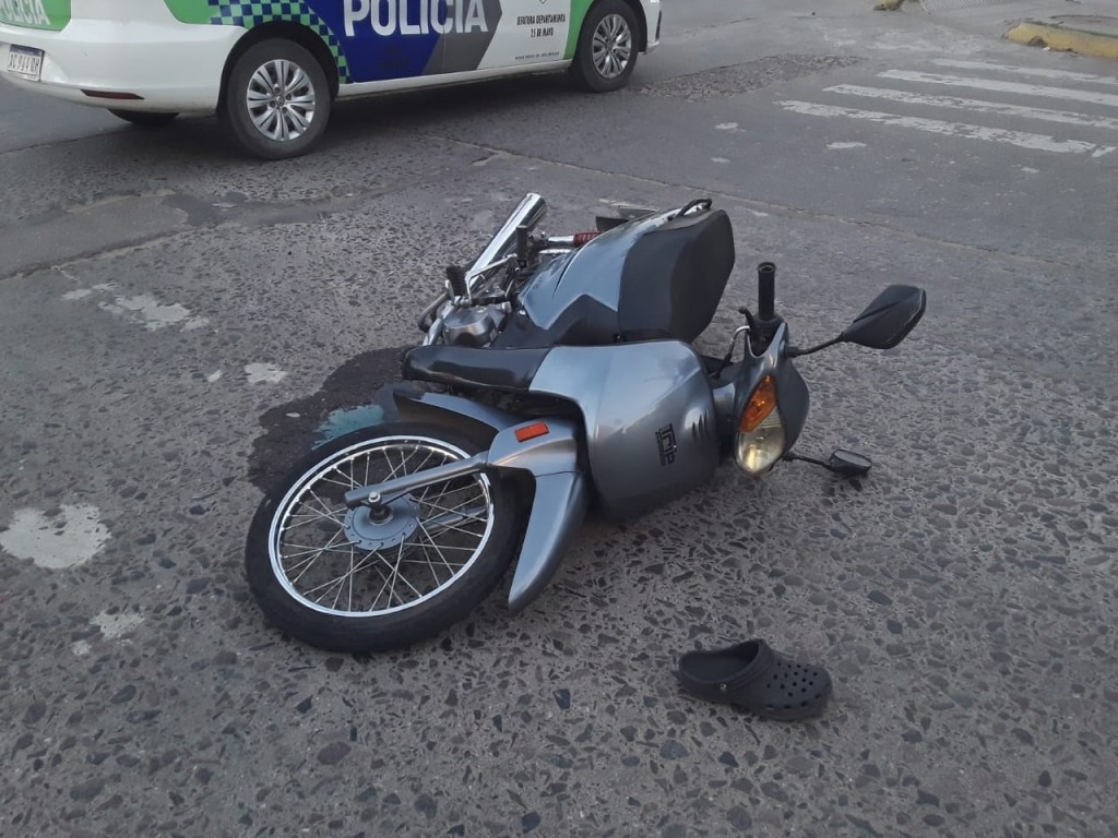 Milanjo Villacorta estuvo en el lugar y pudo confirmar que el conductor de una camioneta Chevrolet y la conductora de una moto 110 protagonizaron el accidente. El servicio de Urgencias retiró a la conductora de la moto y la trasladó a control, mientras que su acompañante quedó en el lugar.