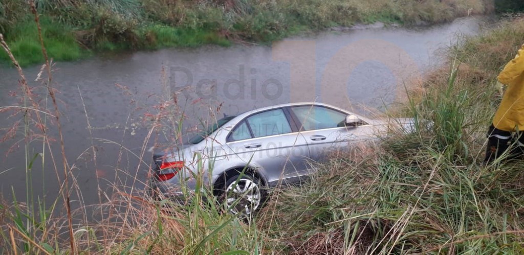 Ocurrió este lunes en la mañana cuando un vehículo cayó al canal de desagüe paralelo a la cinta asfáltica.-