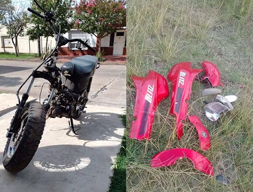 Si bien el imputado sería un menor de edad, secuestraron la moto semi desarmada, ya que le habían sacado los plásticos y cachas frontales y laterales.