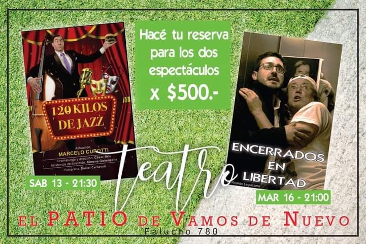 El sábado 13 a las 21:30 horas, se presentará la historia ‘120 KILOS DE JAZZ’ de la mano de Marcelo Curotti. La obra es una historia muy divertida que narra las aventuras de un hombre, quien, intentando conquistar o seducir a una joven, se alista en una banda de jazz.