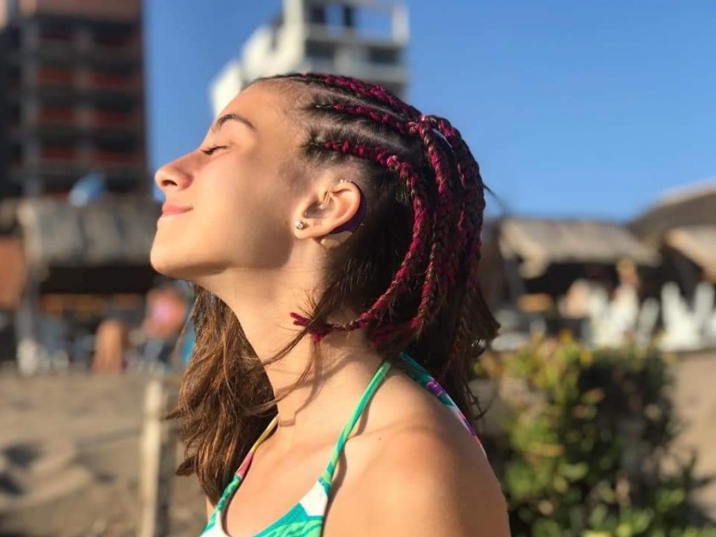 El implante coclear de Cata se complementa gracias a un audífono que posee en el oído izquierdo. “La audición en este momento es de un 95 por ciento, no es la misma capacidad que tenemos nosotros” explicó y agregó que, al tener la habilidad de leer los labios, agudiza muchísimo más el entendimiento con la otra persona.