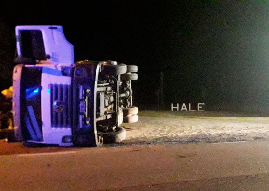 Un camión que transportaba una carga de girasol-cabe agregar que se está en plena etapa de cosecha-sufrió un accidente a la altura de La Nicolasa, frente a la bajada a la localidad de Hale.