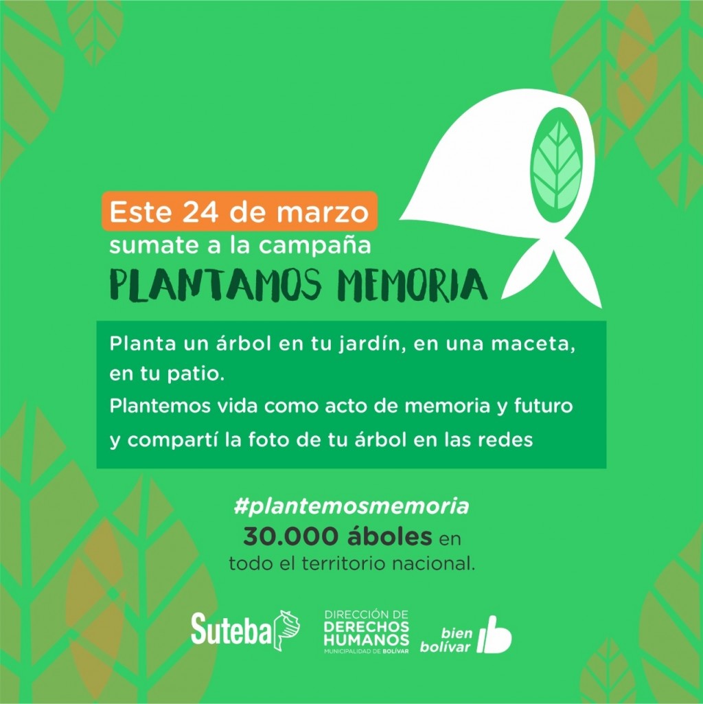 Asimismo, la Dirección de Derechos Humanos y Suteba invitan a la comunidad a que cada vecino plante un árbol, ya sea en el jardín, la vereda o una maceta, como forma simbólica de participación colectiva en la construcción de la memoria.