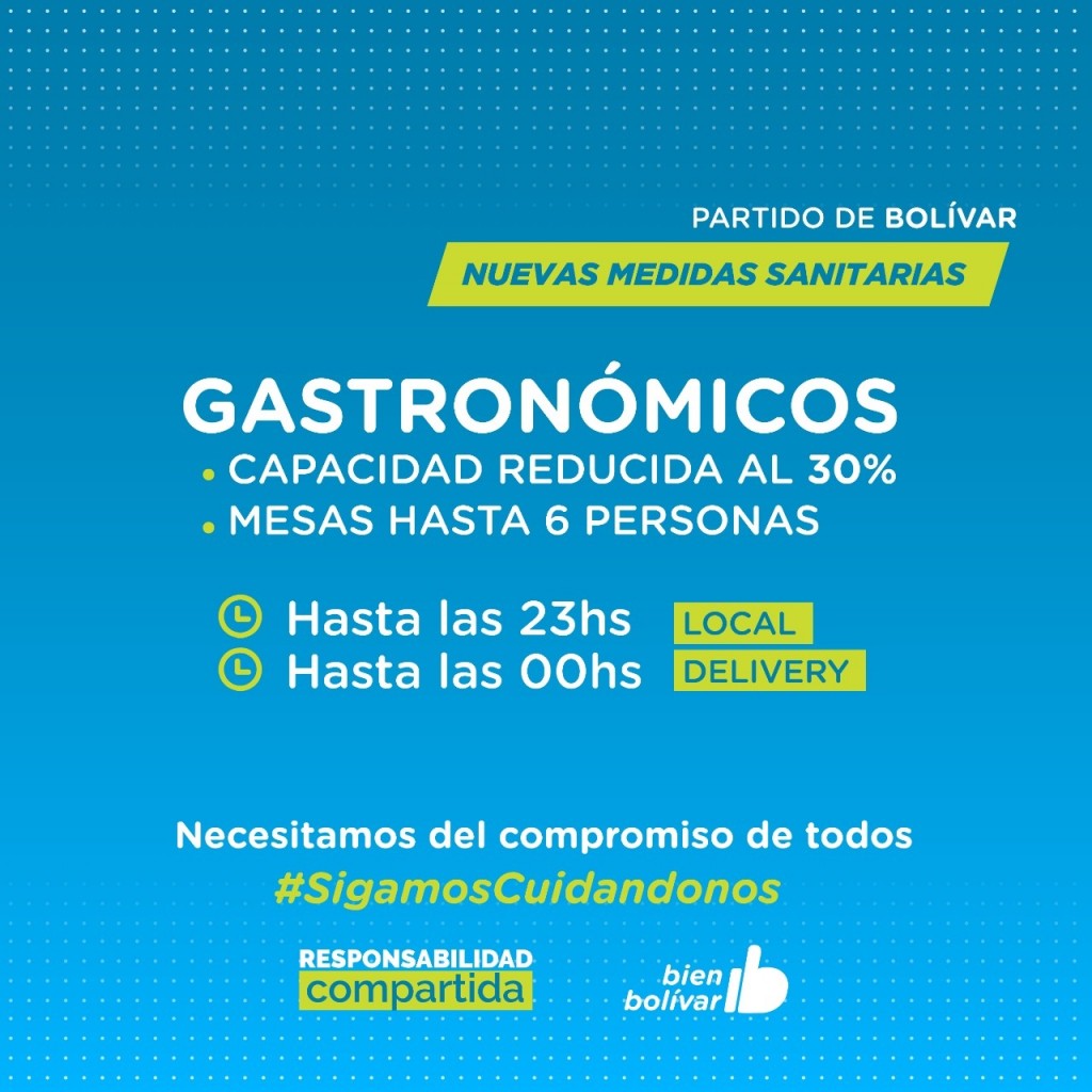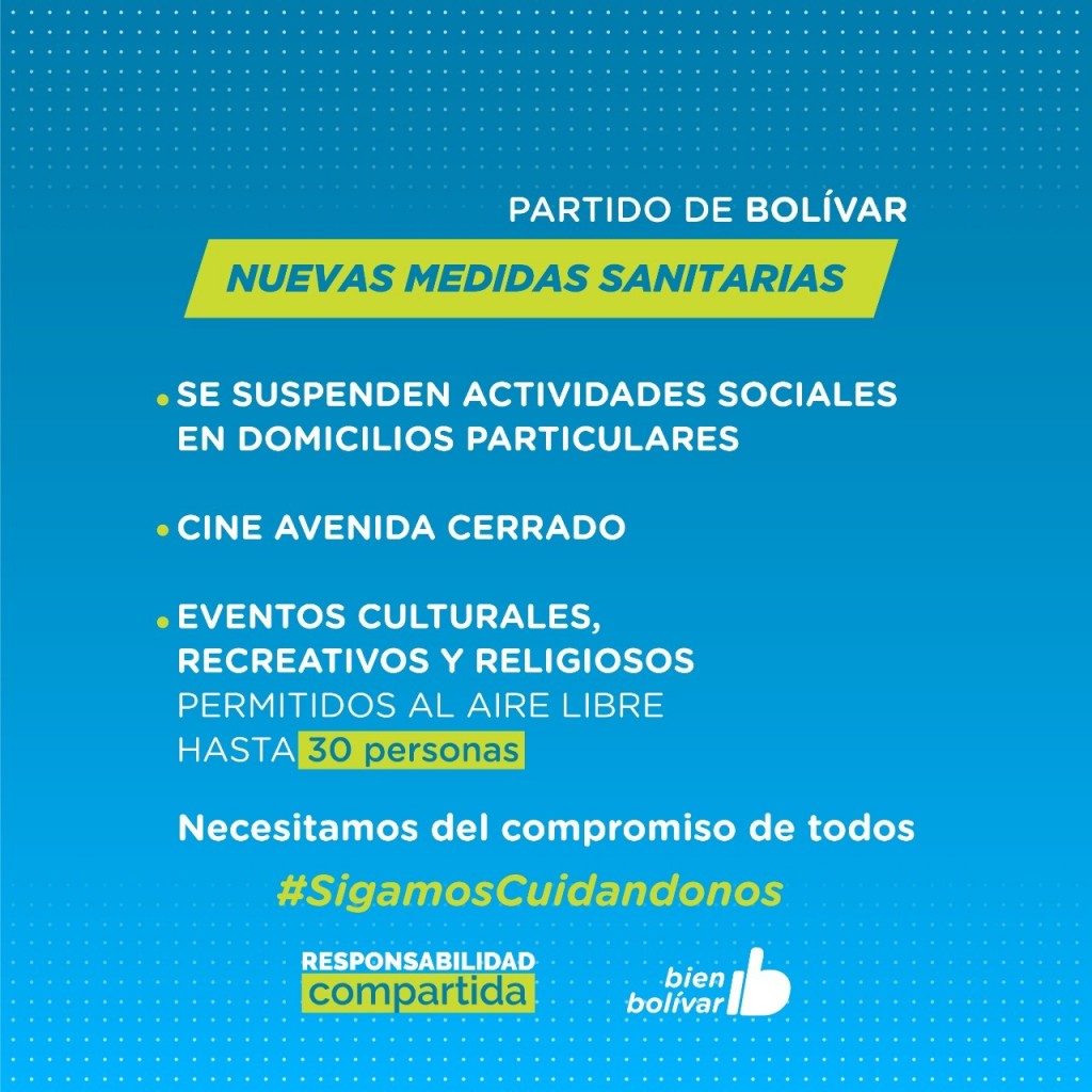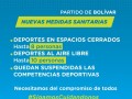 EMERGENCIA SANITARIAEl Hospital M. Capredoni registra el 90% de ocupación de camas, y ante la creciente de casos de Covid-19 y el aumento de consultas por otras patologías, se trabaja en la readecuación de servicios frente a la situación de Emergencia Sanitaria. "Estamos preocupados por la situación, tenemos un solo efector de salud para todas las patologías agudas, de emergencia y quirúrgicas del Partido. Creció el hospital y se organizó pero esta pandemia arrasa con todo lo que uno puede prever", expresó el Dr. Laso.En este sentido, el profesional informó que actualmente hay una sala completa de 22 camas con pacientes Covid graves, jóvenes y con riesgo de vida. "Estamos viendo mucha gente joven, sin factores de riesgo grave, por eso apelamos a la conciencia de cada uno. Las oportunidades en el hospital son finitas y nuestra obligación es informar estamos preocupados, el esfuerzo es diario y es una lucha que nos tiene agotados, el hospital esta haciendo el mayor esfuerzo y necesitamos que nos ayuden", sostuvo Laso. El Gobierno de la Provincia de Buenos Aires ubicó, este martes, nuevamente al Partido de Bolívar en la fase 3 del aislamiento y distanciamiento social, preventivo y obligatorio, por lo que desde el Gobierno Municipal se adhirió a nuevas medidas sanitarias.Desde este miércoles rige el nuevo criterio de restricción horaria de circulación de 23 a 06hs. Quedando exceptuadas de esta restricción horaria las actividades productivas consideradas esenciales, tales como las de carácter manufacturero, agropecuario, de servicios y las de construcción privada, personal sanitario, de seguridad.En la misma línea, la actividad gastronómica deberá funcionar con capacidad reducida al 30% y mesas hasta 6 personas. En el local se podrá trabajar hasta las 23hs y con delivery hasta las 00hs.Las actividades deportivas en espacios cerrados podrán realizarse con la presencia de 8 personas y al aire libre podrán concurrir hasta 10 personas. Quedan suspendidas todas las competencias deportivas de cualquier disciplina.Continúan prohibidas las actividades sociales en domicilios particulares, las funciones del Cine Avenida y los eventos culturales, recreativos y religiosos sólo podrán realizarse al aire libre con un aforo de hasta 30 personas.Con respecto al Plan de Vacunación que se esta desarrollando, el Dr. Carlos Laso afirmó: "No hay dudas de la vacuna, es una de las herramientas para mitigar ésto, disminuye el riesgo de contagio y de complicaciones que es lo que a nosotros nos interesa, los pacientes no complicados no se internan, pueden estar en la casa y no tienen de riesgo de vida". Finalmente, la secretaria de Salud, María Estela Jofré, solicitó a la población el mayor de los cuidados, y el compromiso para sacar adelante el sistema de salud. "Hace un año que el sistema de salud viene trabajando para atender a cada uno de los bolivarenses y la idea es que nos acompañen con lo cuidados necesarios para poder atender a todos con la calidad que se viene atendiendo", cerró Jofré.Texto: Prensa Municipalidad de BolívarAudio : FM 10 Radio Ciudad