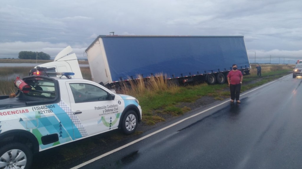 En este caso se trata de un camión Scania conducido por una persona de nacionalidad brasileña. El transporte quedó sobre el margen de la cinta asfáltica tras la maniobra evasiva. Desde Defensa Civil comunicaron a este medio que este sábado a primera hora, se ejecutarán tareas de recuperación del camión.-