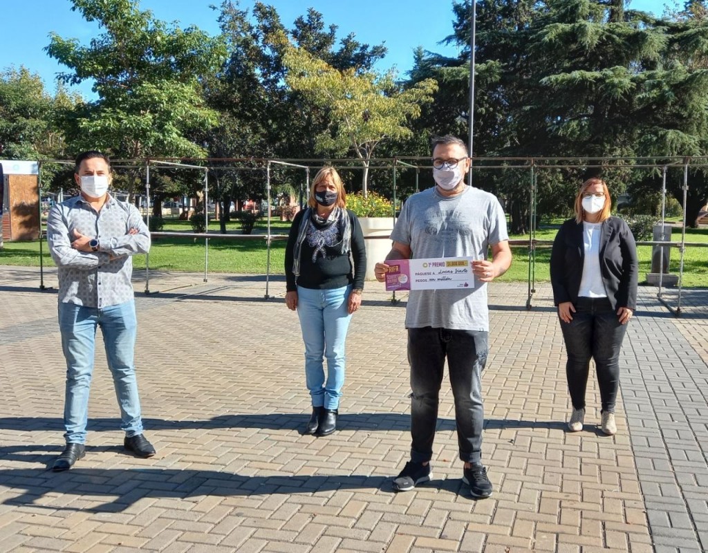 EN EL CENTRO CÍVICO   La rifa, que contó con la colaboración de Bomberos Voluntarios de Pirovano, tuvo sorteos mensuales y tres grandes premios en efectivo que fueron entregados este martes. El ganador del millón de pesos fue Lucas Iriarte de la localidad de Urdampilleta; Pilar Lemos fue la ganadora del segundo premio de $300 mil; y finalmente el tercer premio de $200 mil pesos se lo llevó el vecino de Bolívar Juan Alberto Soroa.   Teniendo en cuenta el contexto de pandemia, las ventas tuvieron que ser suspendidas el año pasado y ante la difícil situación el cuarto y quinto premio quedaron impagos por lo que el valor de los premios será destinado a la institución Bomberos Voluntarios de Pirovano, junto con un monto por la recaudación. "Agradecemos a Beatriz y sus vendedores que se encargaron de la venta de la rifa en esta año tan difícil", destacó Romera.    "Estamos muy contentos por poder hacer entrega de los premios. Agradecemos a la comunidad por acompañarnos, y a las Secretarias de Hacienda y Legal y Técnica de la Municipalidad que en conjunto pudieron llevar adelante la rifa", cerró Fernández.