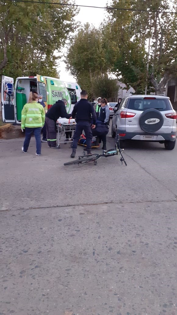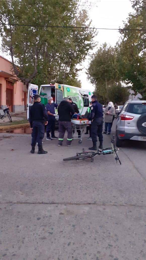 Debió asistir una ambulancia del SAME con el personal médico y paramédico para retirar al joven ciclista hacia el nosocomio para realizarle los controles de rigor
