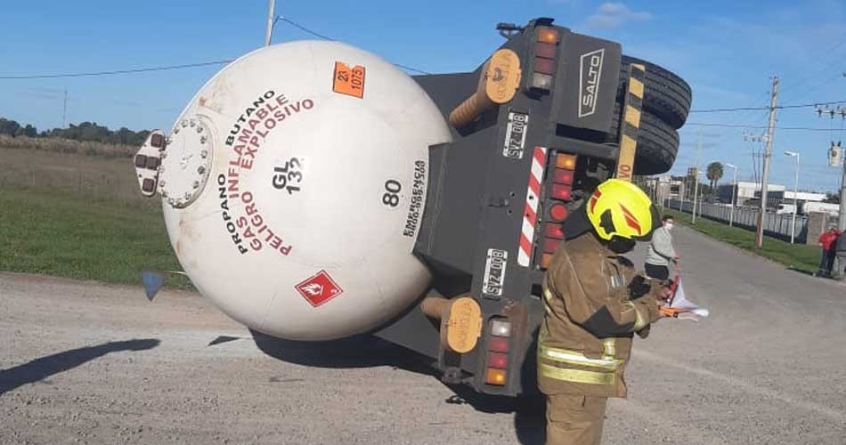 Un camión cargado con 23 toneladas de gas butano volcó esta tarde en la Ruta 205 cuando ingresaba a la planta de Extragas, ubicada la altura del kilómetro 69.