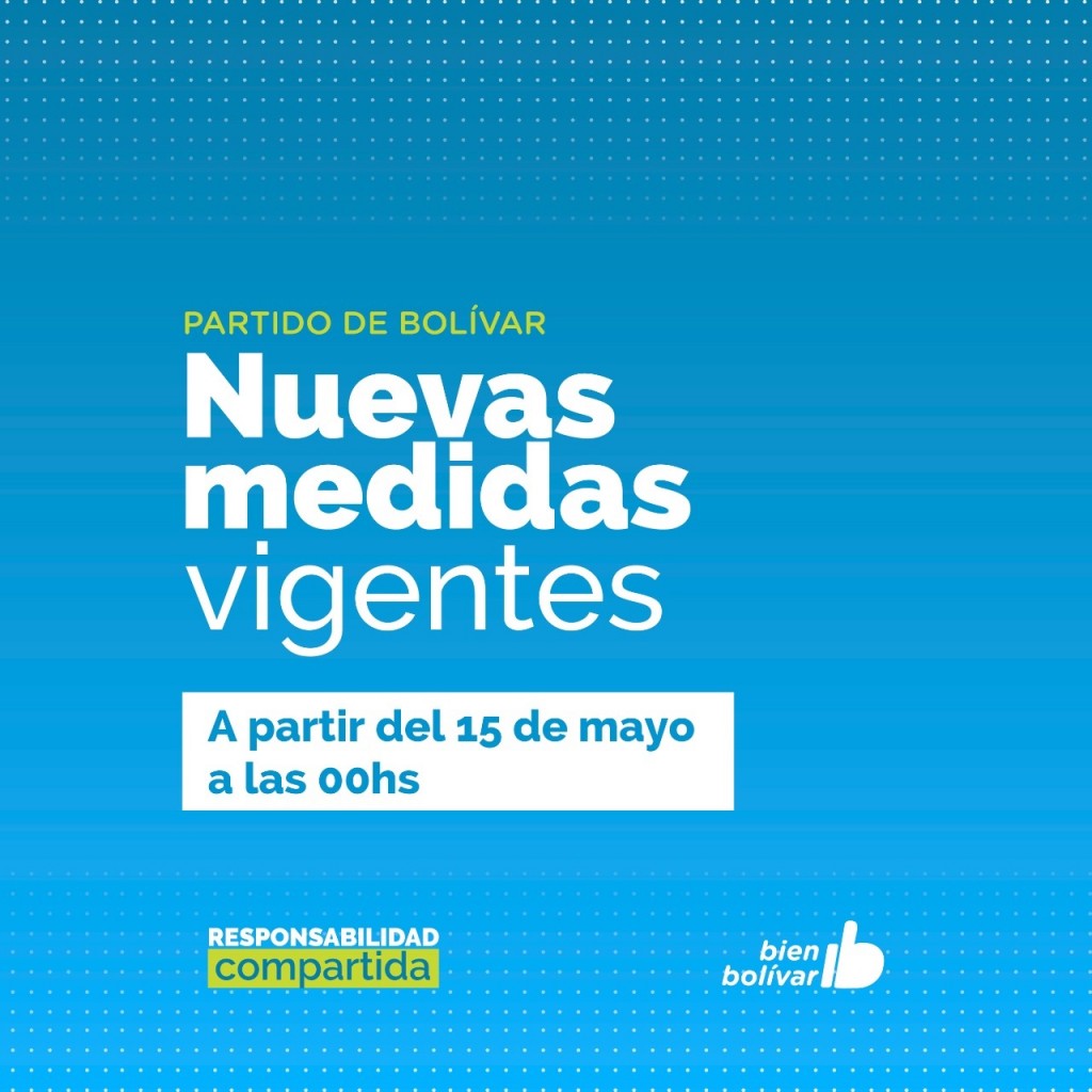 A PARTIR DEL 15 DE MAYO RIGEN NUEVAS RESTRICCIONES EN EL PARTIDO DE BOLÍVAR MEDIANTE EL DECRETO N°1274/21