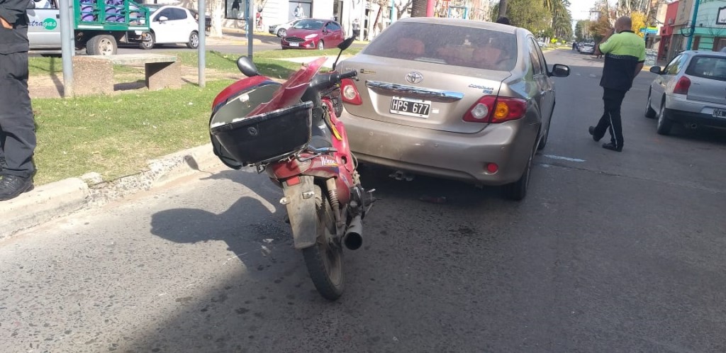Por causas a establecer, un vecino de la localidad que se movilizaba en una motocicleta 110 cc. color bordó, impactó con la parte trasera de un Toyota Corolla color champagne, dominio colocado HPS 677 mientras circulaba por la mencionada avenida.
