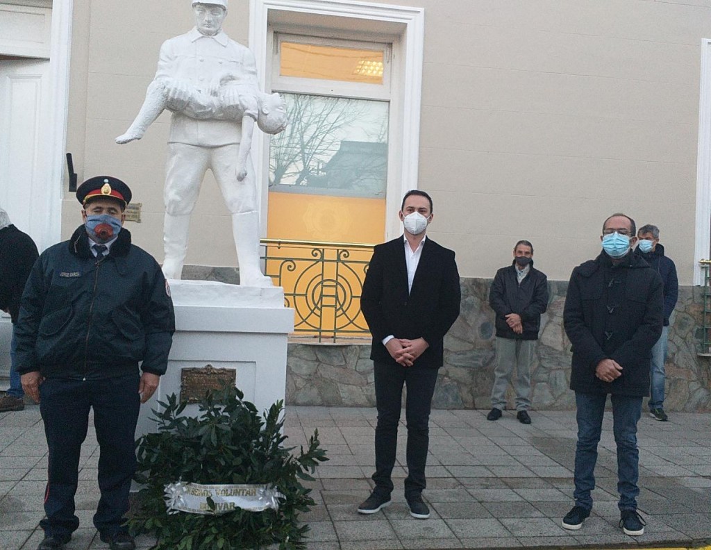 El jefe comunal acompañó a la Comisión Directiva de Bomberos de Bolívar y a los Bomberos locales en el clásico toque de sirenas que se realizó a las 8:00hs, y luego, se colocó una ofrenda florar en el monumento al bombero que se encuentra frente a la sede.-