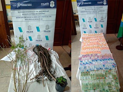 Como resultado se procedió al secuestro de 15 telefonos celulares, 4 balanzas de precisión, 1 ladrillo compacto de cannabis sativa por un guarismo de 223 gramos, 21 blisters  de psicofármacos, 10 tarros de psicofármacos, 6 plantas de cannabis sativa, 3 recipientes conteniendo sustancia en polvo color blanco simil clorhidrato de cocaína, dos envoltorios conteniendo picadura de cannabis sativa, un revólver calibre .32 largo, una escopeta calibre 16 y  215.410 pesos argentinos en efectivo, cuya procedencia no pudo justificar el morador de uno de los domicilios allanados. Se trasladaron varias personas mayores de edad al asiento se la Comisaría de Bolívar a los fines de cumplimentar recaudos legales y ser notificados de la formación de la presente causa.