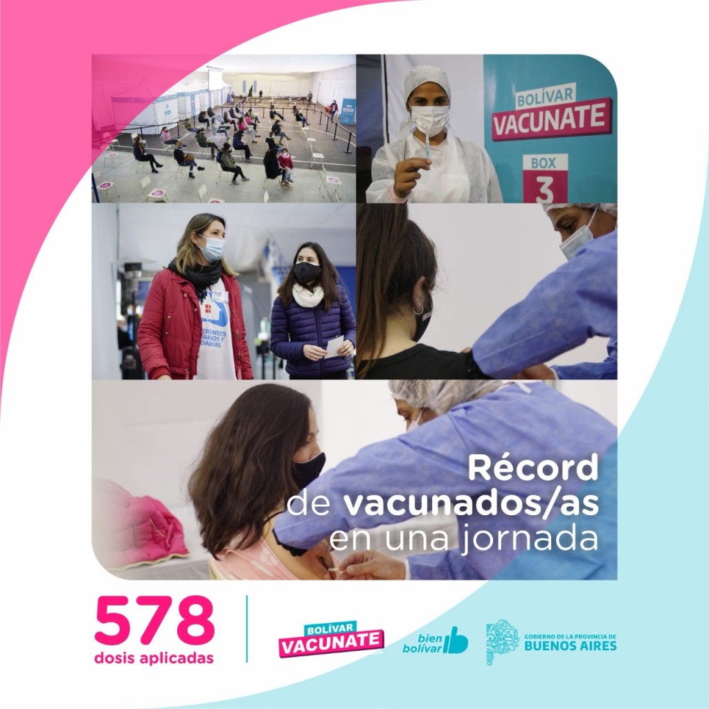 Durante la jornada de este martes se alcanzó una cifra récord de dosis aplicadas en Bolívar, en la que fueron vacunados 578 bolivarenses registrados en el Plan Provincial de Vacunación, y aquellas personas que se presentaron de manera espontánea y pertenecen a los grupos priorizados en esta nueva etapa.
