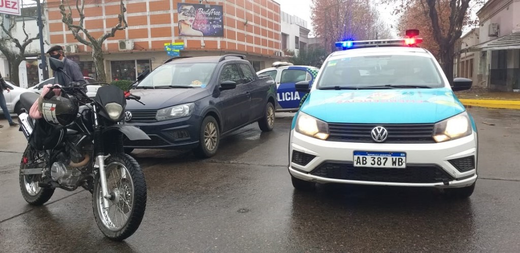 Dos personas transitaban a bordo de una Volkswagen Saveiro e intentaban a atravesar la avenida cuando coinciden en tiempo y espacio con un conductor que lo hacía a bordo de una moto tipo Enduro