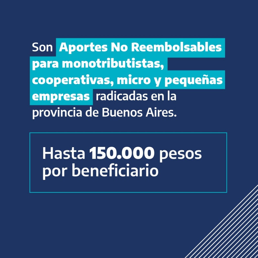 Este programa está dirigido a monotributistas, cooperativas, micros o pequeña empresa, radicadas en la Provincia de Buenos Aires, que desarrollen actividades que han sido afectadas por la emergencia sanitaria como consecuencia de la pandemia de Covid-19.