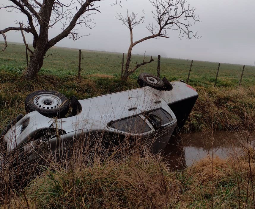 Se trata de una camioneta Toyota Hilux dominio colocado (AB- 988- ZC)  cuyo conductor es un productor agropecuario de la zona, que manifestó estar en buenas condiciones tras el vuelco.