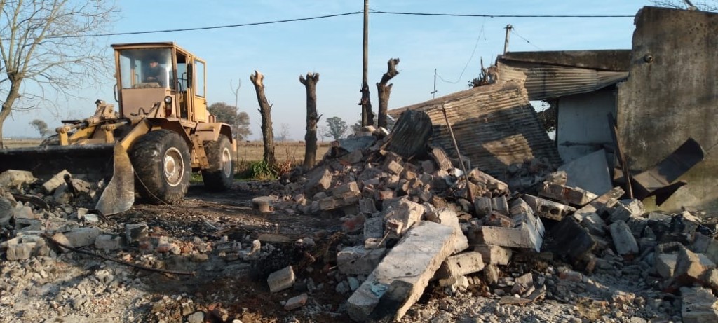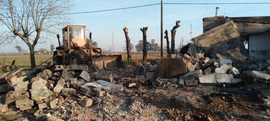 Ya se realizó la demolición de los restos de la estructura, y se rescataron algunas chapas como para armar un galponcito donde se puedan guardar algunas cosas. “Pensábamos que nos iba a servir el contrapiso pero la verdad es que estaba todo partido y lo tuvimos que levantar. Las chapas que rescatamos con muy pocas pero alguna utilidad le vamos a dar. En cuanto a las aberturas no quedó ninguna y tirantería mucho menos”, destacó.