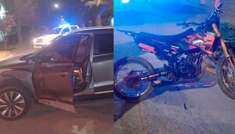 Un joven a bordo de una moto impacta en el lateral de un vehìculo y tras la caída es trasladado al nosocomio por prevención. Intervino Seguridad Vial, Policía Departamental, más el servicio de Urgencias del hospital Capredoni.