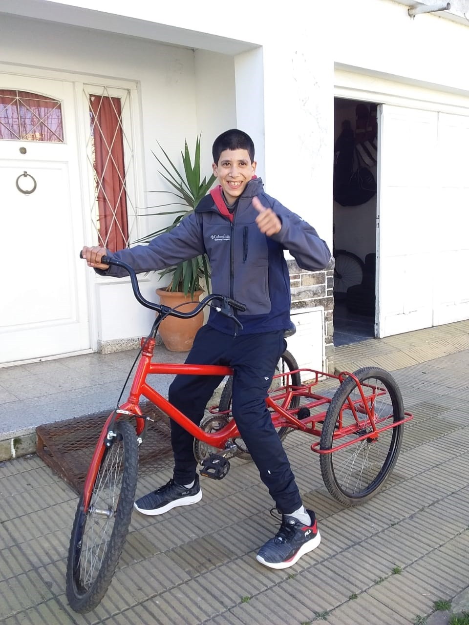 Norberto y Manuel Santos trabajaron en la adaptación del mismo y Cristian Infantas había hecho la donación del triciclo arenado y pintado como a nuevo. Se colocaron algunos accesorios y quedó en perfectas condiciones para que Cristian pueda aprender.