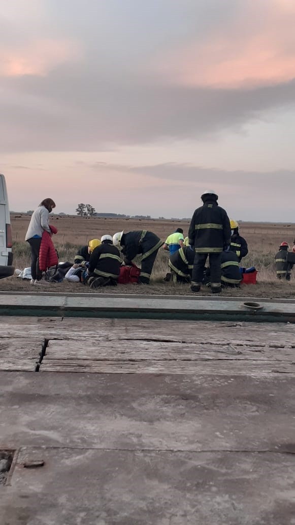Al arribar al lugar el equipo emergente, la Kangoo se encontraba volcada, en tanto la Express sobre la cinta asfáltica. Ambos vehículos con daños estructurales muy importantes.