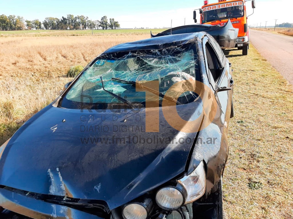 La curva del accidente está en inmediaciones de "La Emilse", donde Bomberos Voluntarios trabajaron para que el Chevrolet Sonic MTW-647, pueda ser retirado del lugar.