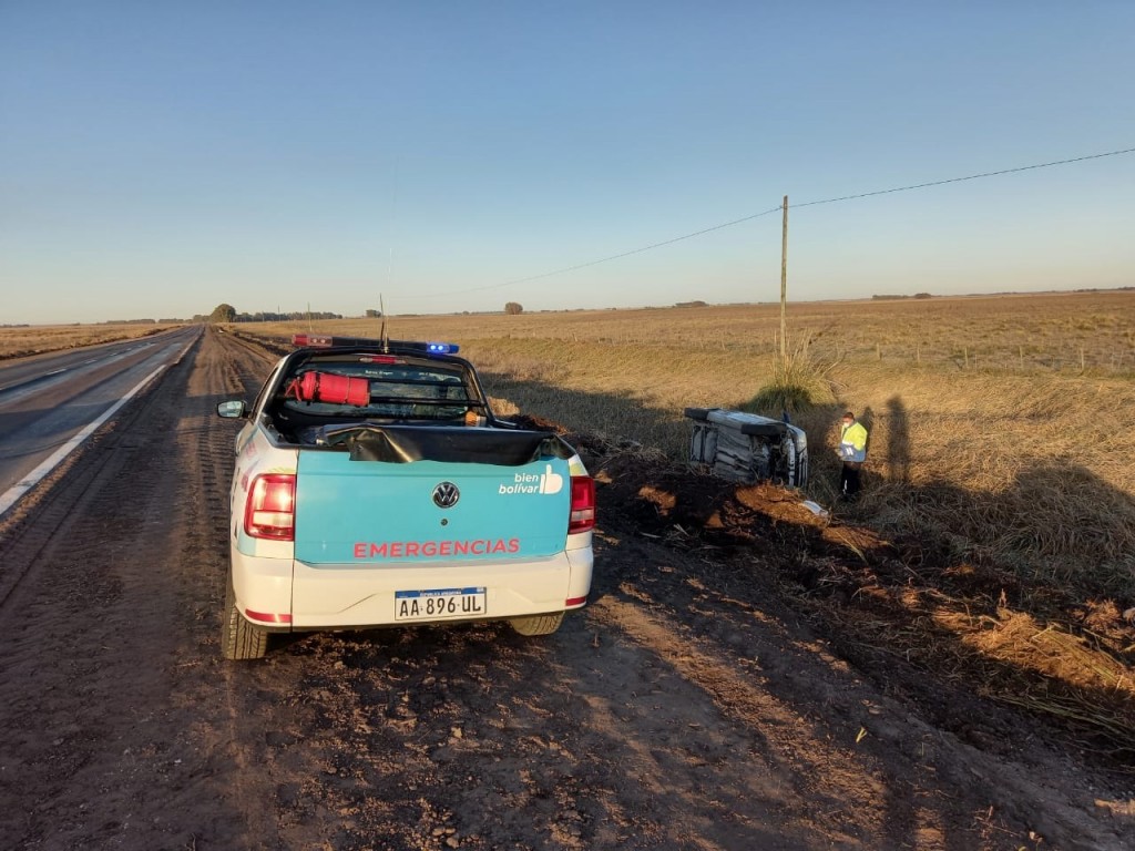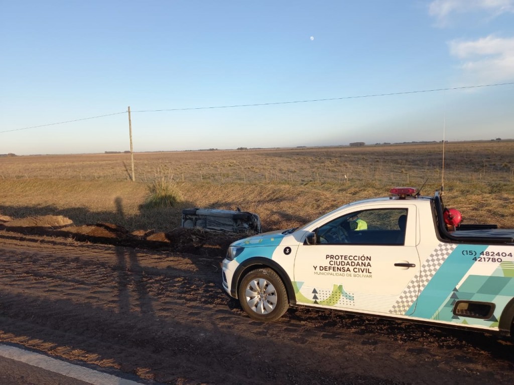 Una familia de González Chávez sufrió un vuelco en ruta 65, a unos 20 kilómetros de la rotonda 65 y 205