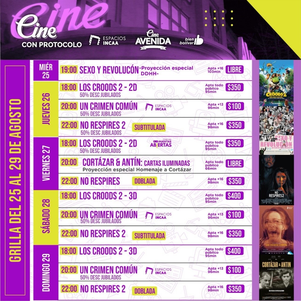 Tal como lo establece el Gobierno Provincial, el Cine Avenida implementa el Pase Sanitario, es decir que solo podrán ingresar aquellas personas que estén vacunadas contra el Covid-19, con al menos la primera dosis, por lo que se procederá a solicitar el certificado de vacunación a los/as espectadores/as mayores de 18 años; y funciona respetando un aforo del 50% en su interior con burbujas de hasta 5 personas.