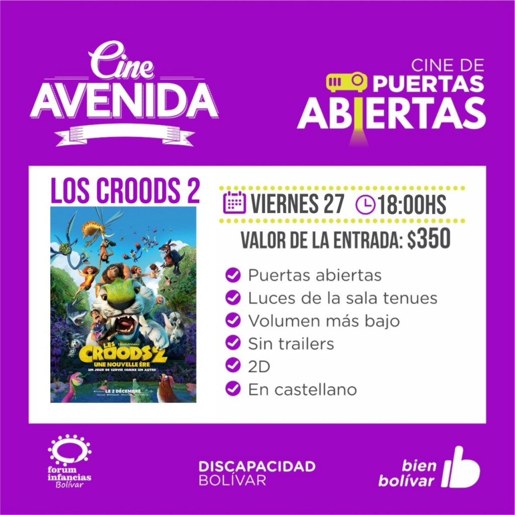 Además, el viernes a las 18hs con el film “Los Croods 2” se llevará a cabo la iniciativa Cine de Puertas Abiertas, que tiene como principal característica la proyección de la película con el sonido más bajo, las puertas de la sala abiertas y las luces encendidas, con el fin de garantizar el acceso de todas las personas al cine.