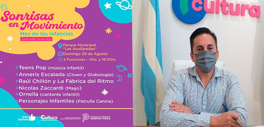 Este domingo 29 en el Parque Las Acollaradas, se podrá disfrutar en familia del evento “Sonrisas en Movimiento”, organizado por la Secretaria de Desarrollo de la Comunidad, la Dirección de Cultura y la Dirección de Niñez, Adolescencia y Familia en el marco del Mes de las Infancias.