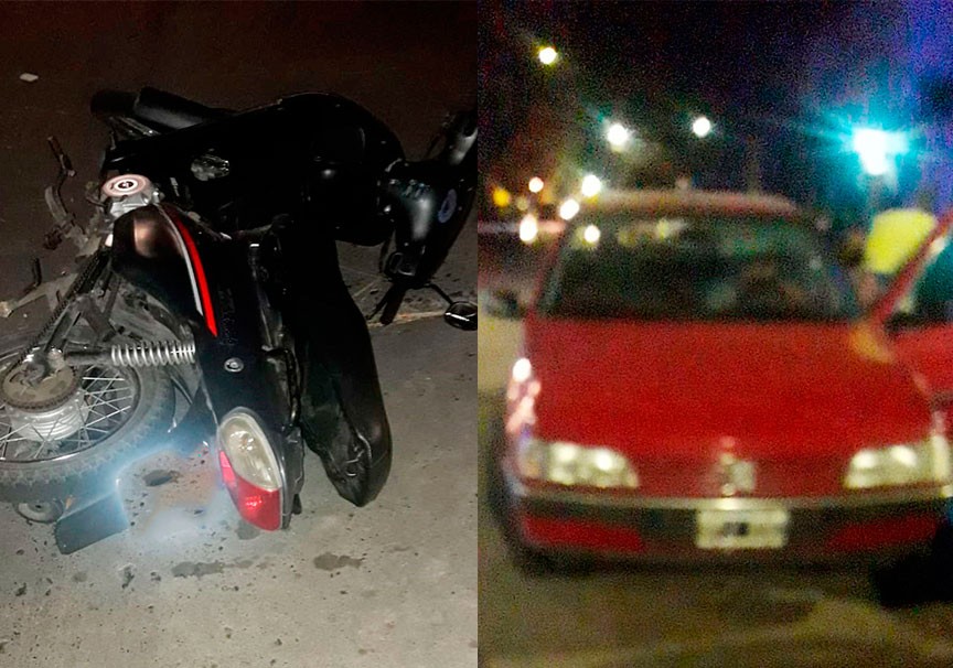 Se trata de un Peugeot 405, dominio colocado (RPJ -496), conducido por una persona mayor de edad, y una moto Zanella 110 cc, dominio colocado (A003JXN), en la que se movilizaban dos mujeres mayores de edad.