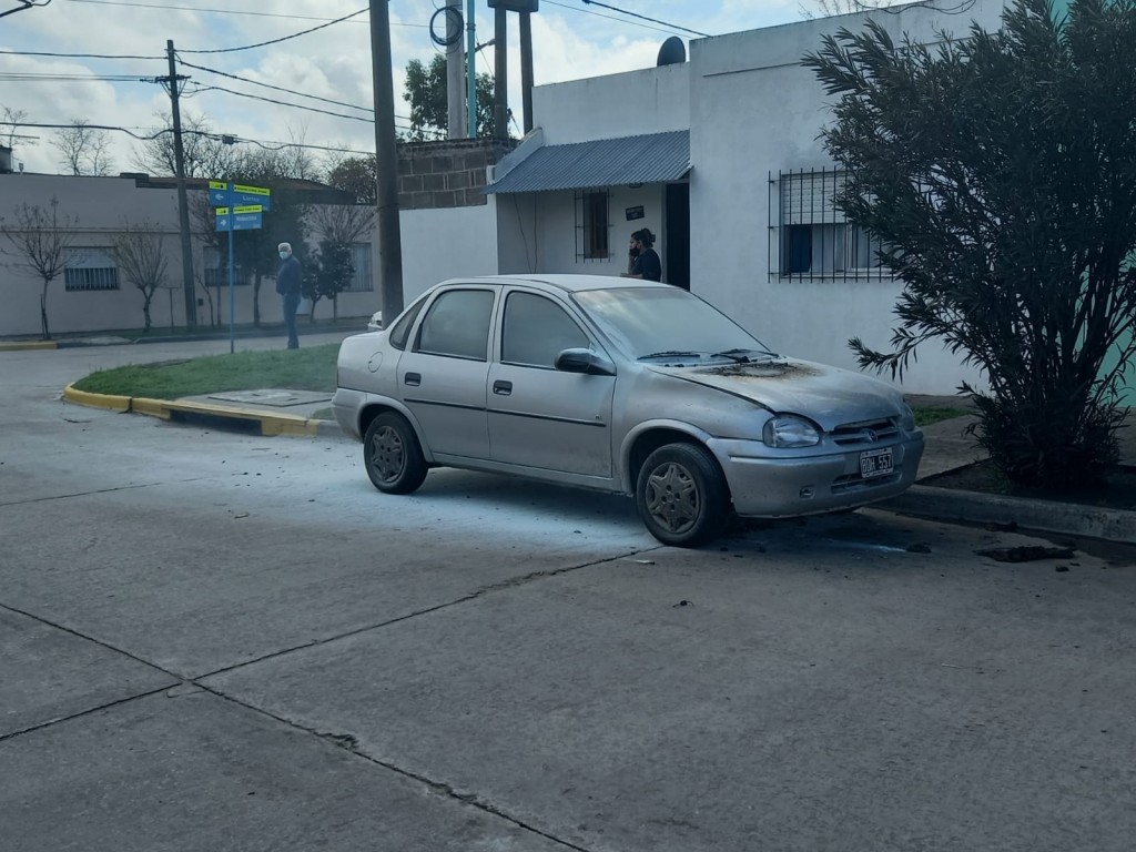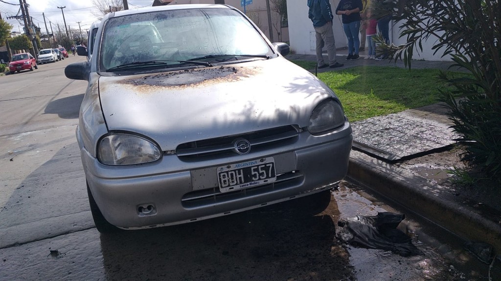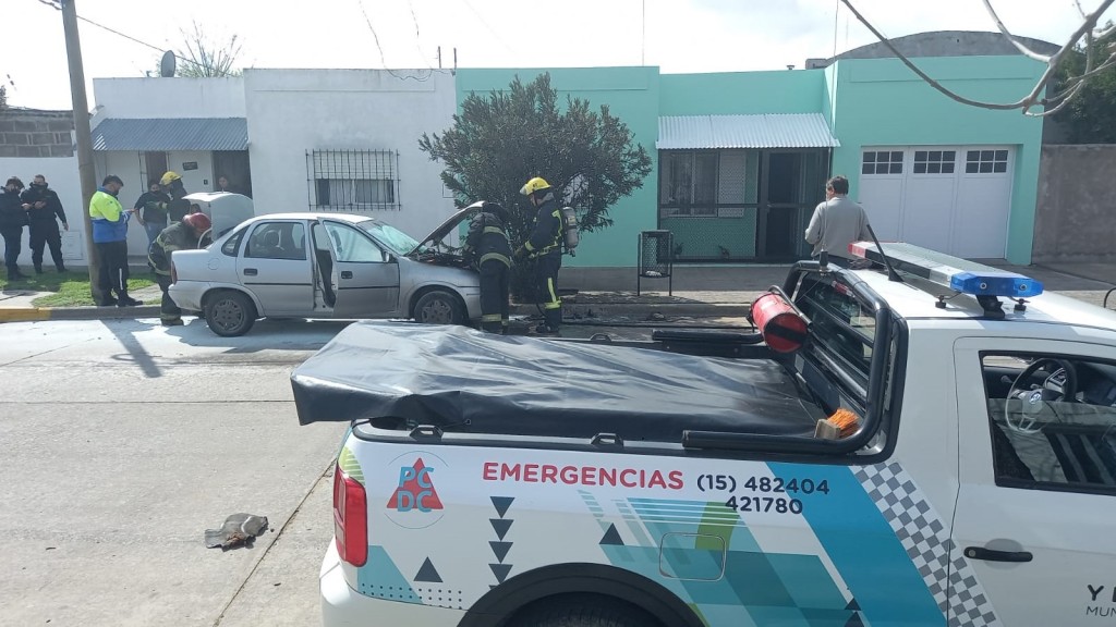 Se trata de Un Chevrolet Corsa color gris plata, dominio colocado BDH-557 ubicado en calle Rebución nº597. Una vez reportado el hecho al Centro de Operaciones, asistió una dotación de Bomberos Voluntarios a cargo de Víctor Urigoytea, sumándose el móvil 3 de Defensa Civil cuyo matafuegos fue utilizado inicialmente.