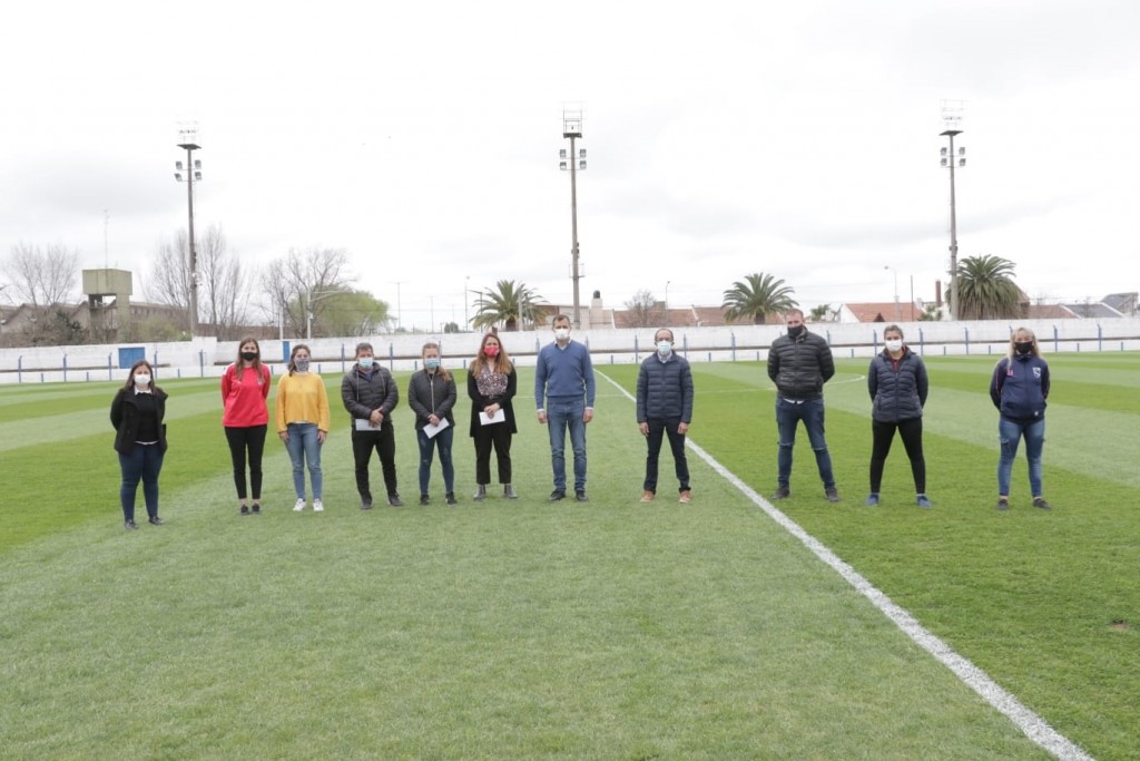 En el Estadio Municipal, el intendente Marcos Pisano, el diputado Eduardo “Bali” Bucca, el director de Deportes del Municipio, Alejandro Viola, y la secretaria de Desarrollo de la Comunidad, Lorena Gallego, se reunieron con representantes de los equipos de fútbol femenino y entregaron aportes económicos para solventar gastos del torneo que se está desarrollando.