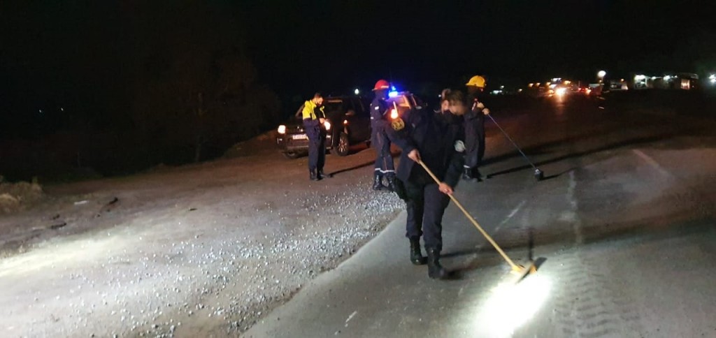 Roque Bazán, Jefe de Defensa Civil arriba al lugar junto al móvil nº2 perteneciente al área y coordina el operativo para limpiar la ruta y evitar accidentes.